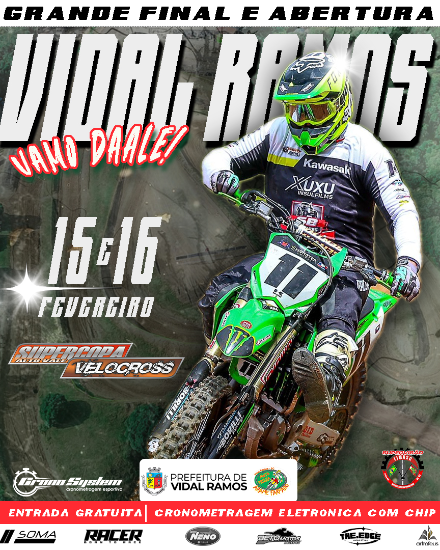 Nos dias 15 e 16 de fevereiro, a cidade de Vidal Ramos será o centro das atenções do Velocross com a realização da Supercopa Alto Vale no Parque da Doce Festa. O evento faz parte das comemorações do aniversário do município e promete disputas de alto nível, reunindo pilotos de diversas categorias para a grande final do campeonato 2024 e a abertura oficial da temporada 2025.